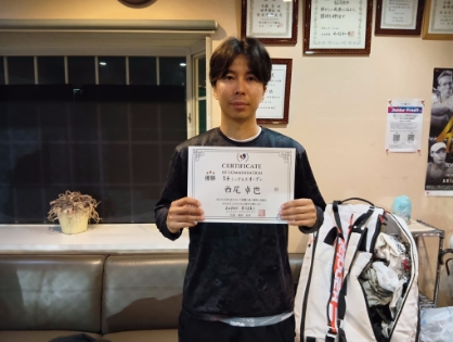 2026.03.21 男子シングルス トマトインドアテニスクラブ 03/21(土) 男子シングルス オープン 優勝<トマトインドアテニスクラブ> 西尾卓也さん、優勝おめでとうございます(^O^) 【優勝者コメント】 久しぶりに富田さんに勝ててうれしいです! 拍手7