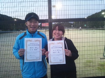 2015.01.05 ミックスダブルス インスピリッツテニスクラブ 01/04(日) ミックスダブルス 初級 賞品付 優勝<インスピリッツテニスクラブ> パラヘッドさん、サーモスさん、優勝おめでとうございます(^O^)【優勝者コメント】パラヘッドさん「またがんばります。」サーモスさん「もっと頑張ってください。」 拍手0