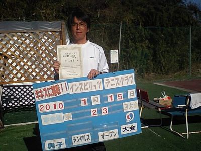 2010.01.15 男子シングルス インスピリッツテニスクラブ 01/14(木) 男子シングルス オープン 優勝<インスピリッツテニスクラブ> 優勝は小坂剛史さんでした!! おめでとうございます!! コメント ドラコン賞とりました!! 拍手0