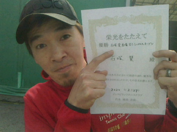 2020.02.27 男子シングルス インスピリッツテニスクラブ 02/26(水) 男子シングルス オープン 優勝<インスピリッツテニスクラブ> 今井毅さん、優勝おめでとうございます(^O^)【優勝者コメント】目標が達成できたと思います! 拍手0
