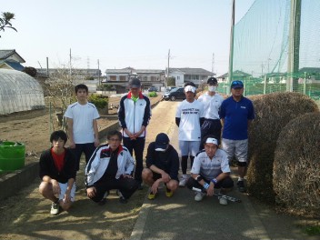 2013.03.11 集合写真 大宮運動場 03/10(日) 男子ダブルス オープン・女子ダブルス オープン<大宮運動場> 男子ダブルス オープン8ペア、女子ダブルス オープン7ペアで開催させて頂きました。皆様、1試合程行った所で強風と砂塵のため、中止とさせて頂きました。大変申し訳ございませんでした。皆様のまたのご参加を心よりお待ちしております! 拍手0