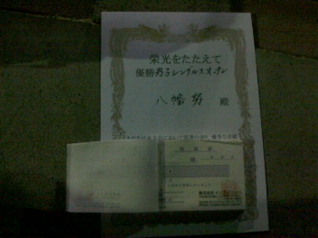2016.03.22 男子シングルス えすぽわーる伊佐沼 03/21(月) 男子シングルス オープン 優勝<えすぽわーる伊佐沼> 八幡努さん、優勝おめでとうございます(^O^)【優勝者コメント】宛名は上で。 拍手0