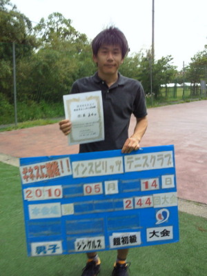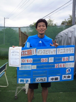 2010.05.15 男子シングルス インスピリッツテニスクラブ 05/15(土) 男子シングルス 初級 優勝<インスピリッツテニスクラブ> 塩澤輝幸さん優勝おめでとうございます。 【優勝者コメント】 まいったなあ〜! 拍手0
