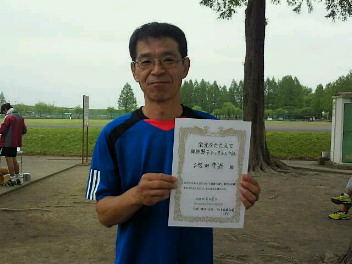 2011.05.05 男子シングルス 05/04(水) 男子シングルス 初級 優勝<松伏記念公園> 佐藤文雄さん、優勝おめでとうございます(^O^)【優勝者コメント】新ラケットのおかげで勝てました。 拍手0