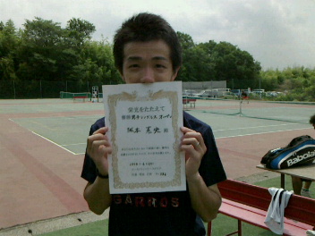 2014.06.26 男子シングルス インスピリッツテニスクラブ 06/25(水) 男子シングルス オープン 優勝<インスピリッツテニスクラブ> 阪本憲央さん、優勝おめでとうございます(^O^)【優勝者コメント】初優勝!今週末の実業団もシングルス頑張ります! 拍手0