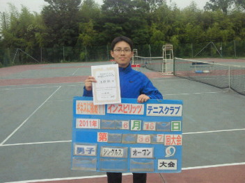 2011.06.17 男子シングルス インスピリッツテニスクラブ 06/16(木) 男子シングルス オープン 優勝<インスピリッツテニスクラブ> 新美伸敏さん、優勝おめでとうございます(^O^)【優勝者コメント】大事なのは、丹田です! 拍手0