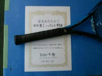 2020.07.14 男子シングルス インスピリッツテニスクラブ 07/14(火) 男子シングルス 中級 優勝<インスピリッツテニスクラブ> さやぽんぽんさん、優勝おめでとうございます(^O^)【優勝者コメント】優勝できてうれしいです! 拍手0
