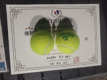 2025.07.21 ミックスダブルス 西武ドームテニスコート 07/20(日) ミックスダブルス 中級 優勝<西武ドームテニスコート> ジュンイチさん、くまさん☆さん、優勝おめでとうございます(^O^) 【優勝者コメント】 真夏の試合、協力しながら接戦を制することができました。 拍手7