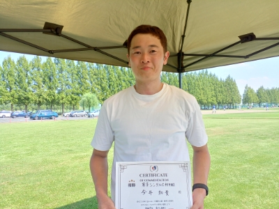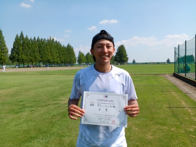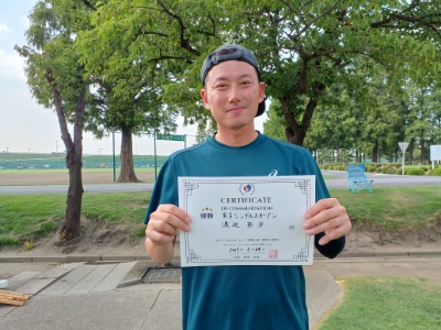 2025.08.24 男子シングルス 大宮運動場 08/24(日) 男子シングルス 中級 ※さいたまスポーツコミッショ ン主催 Sフィールドリーグ 優勝<大宮運動場> 美村貞敬さん、優勝おめでとうございます(^O^) 【優勝者コメント】 もう1回がんばります!! 拍手6