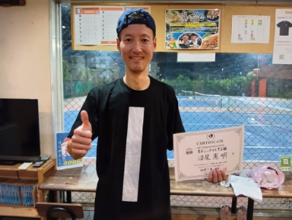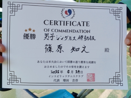 2025.08.26 男子シングルス トマトインドアテニスクラブ 08/26(火) 榊原太郎出場!男子シングルス オープン 優勝<トマトインドアテニスクラブ> 榊原太郎さん、優勝おめでとうございます(^O^) 【優勝者コメント】 どんな状況でも諦めず良く頑張りました! 拍手10