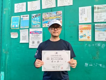 2025.08.24 男子シングルス ファンテニススクール八潮 08/24(日) 男子シングルス 中上級 優勝<ファンテニススクール八潮> 沼尾憲明さん、優勝おめでとうございます(^O^) 【優勝者コメント】 出張中の素振りが効きました! 拍手3
