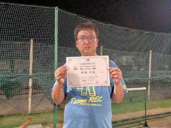 2025.08.30 男子シングルス ジャクパ・スポーツクラブ 狭山総合グラウンド 08/30(土)男子シングルス 中上級 優勝<ジャクパ狭山総合グラウンド> 下間健祐さん、優勝おめでとうございます(^O^) 【優勝者コメント】 優勝嬉しいです! 次はオープンいきます! 拍手3