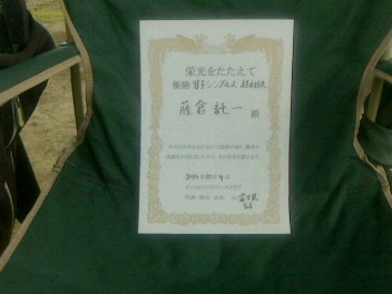 2014.10.05 男子シングルス 10/04(土) 男子シングルス 超初級 優勝<富士見市運動公園> 藤倉純一さん、優勝おめでとうございます(^O^)【優勝者コメント】今日は余裕をもってプレー出来ました! 拍手0