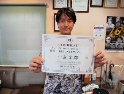 2025.10.31 男子シングルス SENKO潮見コート 10/31(金)男子シングルス オープン 優勝<SENKO潮見コート> 落海圭介さん、優勝おめでとうございます(^O^) 【優勝者コメント】 足が攣らないうちに終われて良かったです! 拍手3