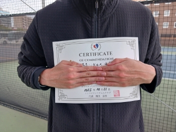 2025.10.29 男子シングルス トマトインドアテニスクラブ 10/29(水) 男子シングルス 初中級 優勝<トマトインドアテニスクラブ> 大高律彦さん、優勝おめでとうございます(^O^) 【優勝者コメント】 諦めずに頑張った甲斐がありました。 拍手4
