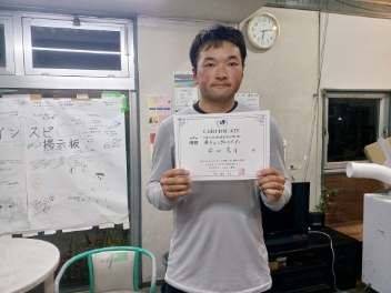 2025.12.27 男子シングルス 大熊テニスクラブ 12/27(土) 男子シングルス オープン賞金付き(一万円) 優勝<大熊テニスクラブ> 白石拓さん、優勝おめでとうございます(^O^) 【優勝者コメント】 4連勝!!また出ます! 拍手6