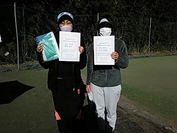 2022.12.24 ミックスダブルス ジャクパ・スポーツクラブ 狭山総合グラウンド 12/24(土) ミックスダブルス オープン 賞品付 優勝<ジャクパ狭山総合グラウンド> 星野佐絵里さん、金澤一朗さん、優勝おめでとうございます(^O^) 【優勝者コメント】 苦しい戦いでした! 拍手1
