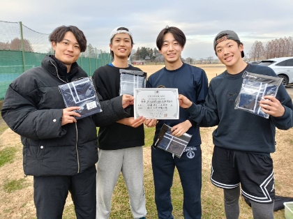 2025.12.20 団体戦 大宮運動場 12/20(土) 男子団体戦 初級~初中級 軽食付(参加賞)&賞品付 ※さ いたまスポーツコミッション主催Sフィールドカップ 優勝<大宮運動場> チームSUNさん(伊藤士竜さん、八木奏多さん、伊藤湧也さん、増渕太郎さん)、優勝おめでとうございます(^O^) 【優勝者コメント】 のりべんおいしかったです。 拍手5