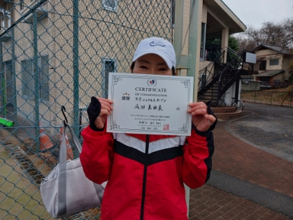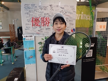 2025.12.20 女子シングルス トマトインドアテニスクラブ 12/20(土) 女子シングルス 初中級 優勝<トマトインドアテニスクラブ> 瀨尾典子さん、優勝おめでとうございます(^O^) 【優勝者コメント】 これからも精進いたします。 対戦していただいた皆様本当にありがとうございました。 拍手9