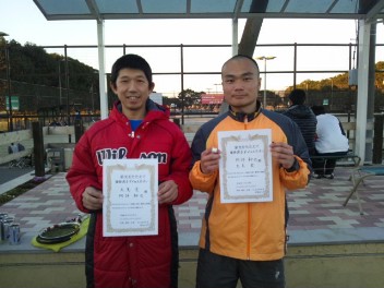 2013.12.31 男子シングルス 桶川グリーンテニスクラブ 12/30(月) 男子ダブルス 中級 優勝<桶川グリーンテニスクラブ> 半田務さん、森川孝秀さん、優勝おめでとうございます(^O^)【優勝者コメント】半田さん「喧嘩したけど勝てて良かったです」森川さん「2日のミックス頑張ります」 拍手0