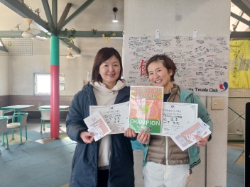 2026.01.18 01/18(日) 女子ダブルス 初中級 優勝<トマトインドアテニスクラブ> 関根智香さん、村上優子さん、優勝おめでとうございます(^O^) 【優勝者コメント】 優勝できて嬉しいです! 拍手5