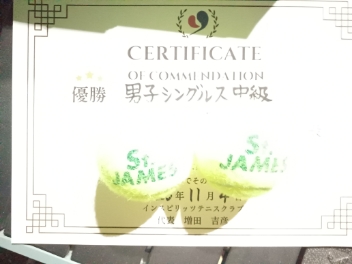 2025.11.04 男子シングルス トマトインドアテニスクラブ 11/04(火) 宮澤盛男(モーリー)出場! 男子シングルス 中級以上 優勝<トマトインドアテニスクラブ> ゆうかずたちごけさん、優勝おめでとうございます(^O^) 【優勝者コメント】 あしつりました。 拍手3