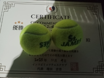 2025.11.07 男子シングルス インスピリッツテニスクラブ 11/07(金) 男子シングルス オープン 優勝<インスピリッツテニスクラブ> ミスターXさん、優勝おめでとうございます(^O^) 【優勝者コメント】 バリウムに感謝! 拍手4