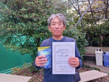 2025.11.07 トマトインドアテニスクラブ 11/06(木)凌駕CUPインスピリッツインドアオープンベテラン(11月 ) 65歳以上 シングルス 優勝<トマトインドアテニスクラブ> 鈴木忠行さん、優勝おめでとうございます(^O^) 【優勝者コメント】 あと20年頑張ります! 拍手12