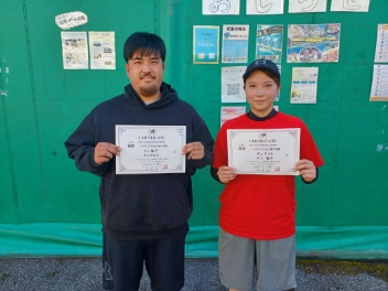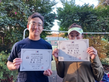 2025.11.29 ミックスダブルス テニスハレ大宮 11/29(土) ミックスダブルス オープン 優勝<テニスハレ大宮> 漆間環さん、林亮治さん、優勝おめでとうございます(^O^) 【優勝者コメント】 ようやく優勝! またチャレンジ 拍手2