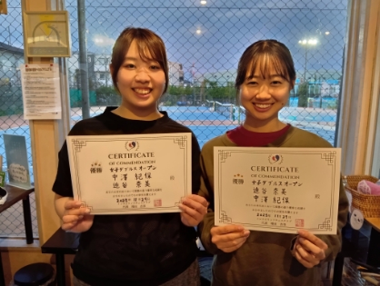 2025.11.29 女子ダブルス ファンテニススクール八潮 11/29(土) 女子ダブルス オープン 優勝<ファンテニススクール八潮> 中澤紀保さん、迫谷奈美さん、優勝おめでとうございます(^O^) 【優勝者コメント】 初参加!楽しかったです!! 拍手4