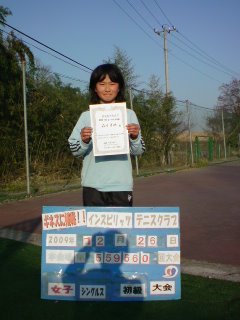 2009.12.26 インスピリッツテニスクラブ 12/26(土) 女子シングルス 初級 優勝<インスピリッツテニスクラブ> 森川 茅穂さん、優勝おめでとうございます(^_^) 完勝でしたね! 次は上のクラスで頑張って下さい。 拍手0