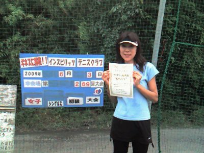 2009.06.10 6/9(火)女子シングルスオープン第2回姫カップ大会優勝写真<SARI会場> 米本里歌さん、優勝おめでとうございます。 ディフェンディングチャンピオンを押さえての見事な優勝でした。 拍手0