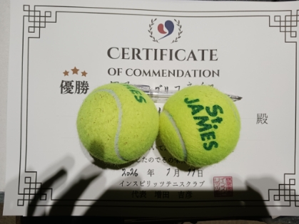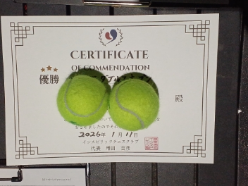 2026.01.12 男子シングルス インスピリッツテニスクラブ 01/12(月) 男子シングルス 中級 優勝<インスピリッツテニスクラブ> 小玉勇輝さん、優勝おめでとうございます(^O^) 【優勝者コメント】 草トー初優勝! 拍手5