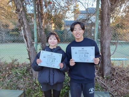 2026.01.12 ミックスダブルス テニスハレ大宮 01/12(月) ミックスダブルス 初中級 優勝<テニスハレ大宮> 太田晴香さん、山口颯太さん、優勝おめでとうございます(^O^) 【優勝者コメント】 次は中級で優勝頑張ります!! 拍手4