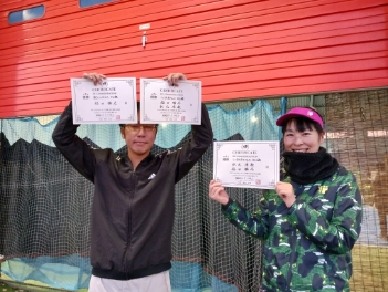 2026.01.12 ミックスダブルス テニスラウンジ上尾 01/12(月)ミックスダブルス 中上級 優勝<テニスラウンジ上尾> 福田勝彦さん、秋元康絵さん、優勝おめでとうございます(^O^) 【優勝者コメント】 福田さん 「寝癖がひどいので隠してます。」 秋元さん 「生きる!(武)Part13」 拍手6
