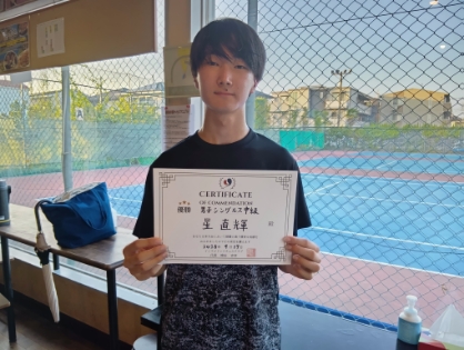 2025.09.17 男子シングルス ファンテニススクール八潮 09/17(水) 男子シングルス 中級 優勝<ファンテニススクール八潮> 星直輝さん、優勝おめでとうございます(^O^) 【優勝者コメント】 楽しかったです!! 拍手8