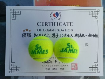 2025.09.19 男子シングルス インスピリッツテニスクラブ 09/19(金) 男子シングルス オープン 優勝<インスピリッツテニスクラブ> 近谷美郎さん、優勝おめでとうございます(^O^) 【優勝者コメント】 Kさん見てますか?!石神井に行ってもテニスがんばります! 拍手9