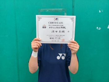 2025.09.19 女子シングルス トマトインドアテニスクラブ 09/19(金) 女子シングルス 初級 優勝<トマトインドアテニスクラブ> 池田圭織さん、優勝おめでとうございます(^O^) 【優勝者コメント】 考えてゲームをすることができました。 皆さん、ありがとうございました!! 拍手6