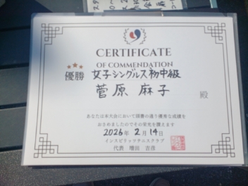 2026.02.15 女子シングルス トマトインドアテニスクラブ 02/15(日) 女子シングルス 超初級 優勝<トマトインドアテニスクラブ> 浅倉恭子さん、優勝おめでとうございます(^O^) 【優勝者コメント】 初優勝!!うれしいです。 拍手8