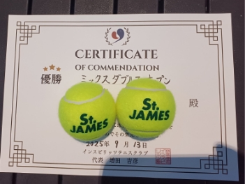 2025.09.13 ミックスダブルス トマトインドアテニスクラブ 09/13(土) ミックスダブルス オープン 優勝<トマトインドアテニスクラブ> インスピAさん、インスピBさん、優勝おめでとうございます(^O^) 【優勝者】 やっとトマト初優勝できました!ありがとうございました! 拍手2